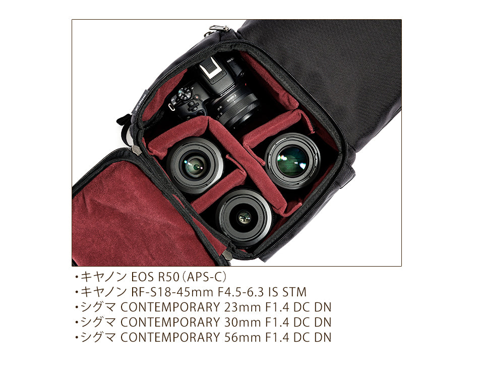 撮影時、瞬時にカメラを取り出したい時はサイドアクセスから 大きいカメラの取出しや、レンズ交換の時は正面から、と使い分けることが可能です。 - その他特徴